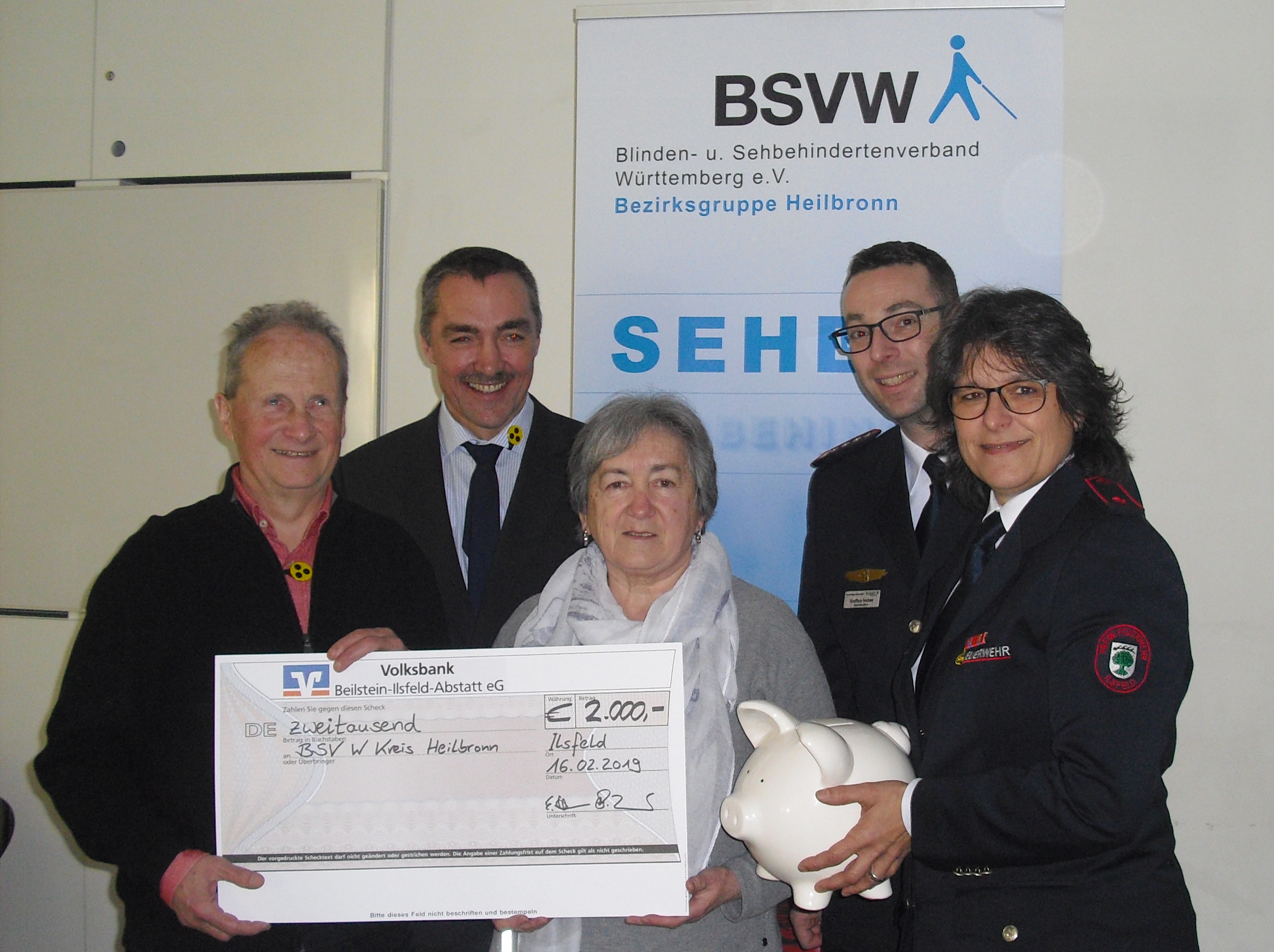 Große Freude herrschte im Saal, als Evelyn Schneider (Leiterin Spielmannszug und Theatergruppe Feuerwehr Ilsfeld), und der Feuerwehrkommandant Steffen Heber eintrafen. Sie brachten den Erlös aus der Benefizveranstaltung vom 27. Januar, zur Übergabe mit.